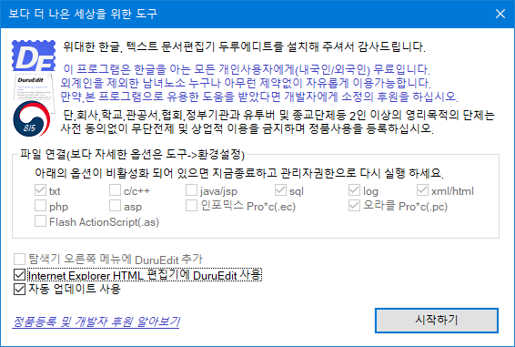 포터블 버전으로, 폴더를 만들어서 압축해제후에 Duruedit.exe를 실행 합니다.