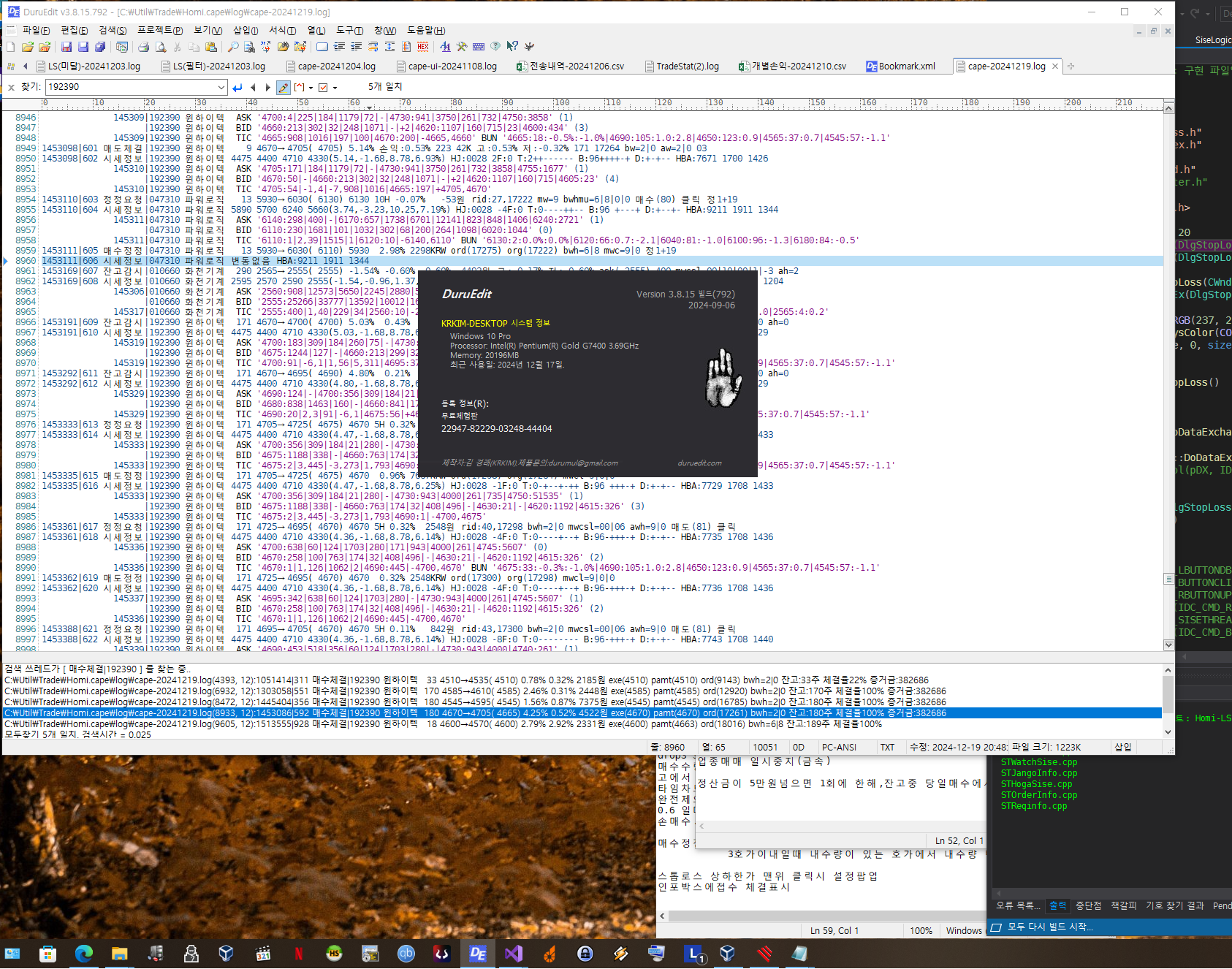 기존의 코드를 ANSI코드로 변경하여 검색하도록 해야함.(한글검색안됨)