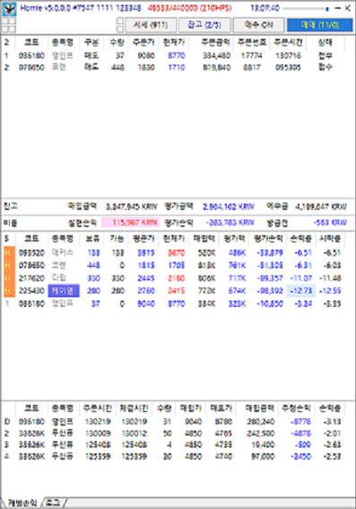데이트레이딩 및 틱거래 전용 주식매매 프로그램